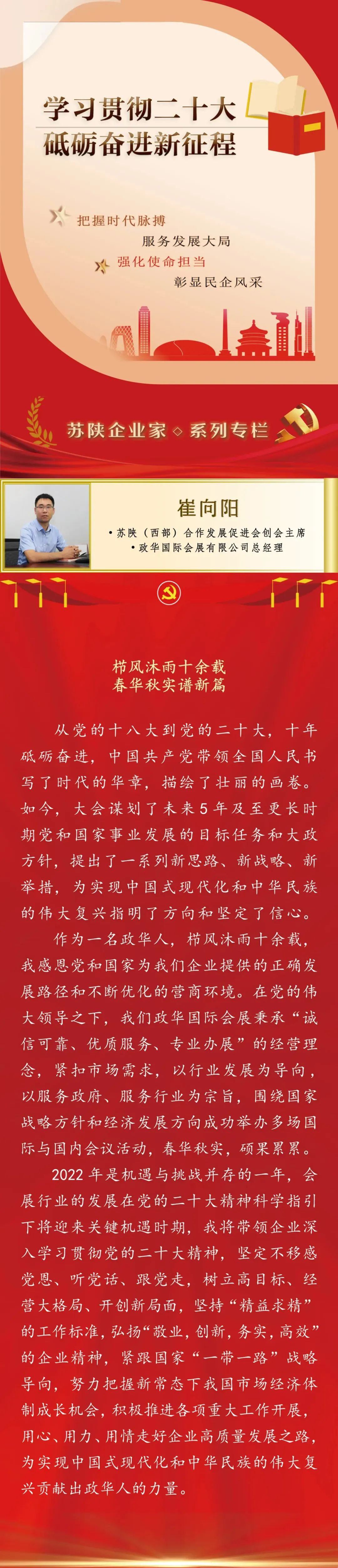 学习贯彻二十大,砥砺奋进新征程 | 崔向阳:栉风沐雨十余载,春华秋实谱新篇